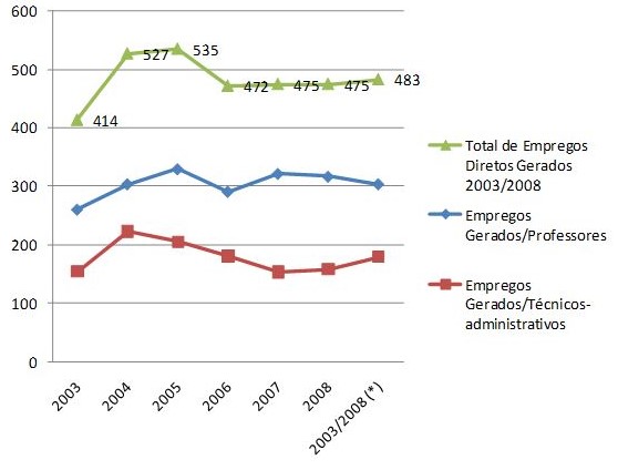 - Gráfico 2 - Empregos diretos gerados pela UnC, campus Canoinhas – período 2003-2008