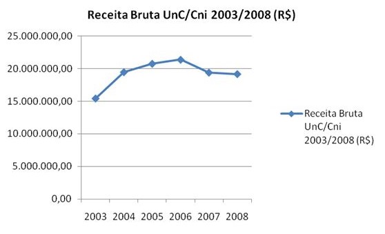 - Gráfico 4 - Receita Bruta UnC, campus Canoinhas – 2003-2008